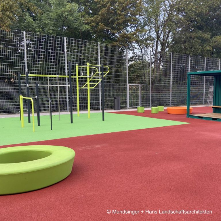Die sanierungsbedürftige Sportfeldfläche wird durch zusätzliche Spiel- und Sportmöglichkeiten sowie Aufenthaltsbereiche umgestaltet und erhält ein zeitgemäßes Erscheinungsbild. Hierdurch entsteht ein neuer Aktivitätsort für Kinder und Jugendliche, der die Gemeinschaft stärkt und deren spezifische Bedürfnisse berücksichtigt.